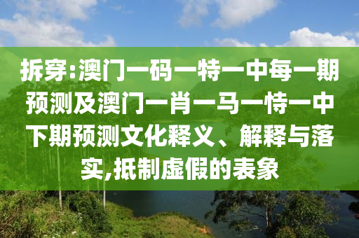 拆穿:澳門一碼一特一中每一期預測及澳門一肖一馬一恃一中下期預測文化釋義、解釋與落實,抵制虛假的表象